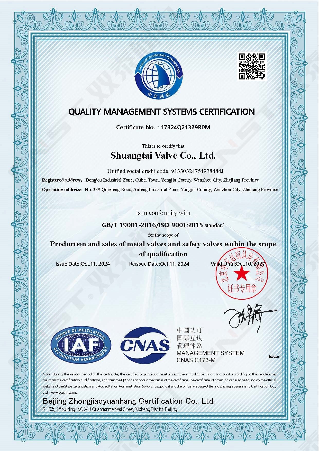 ISO9001質量管理體系證書英文版